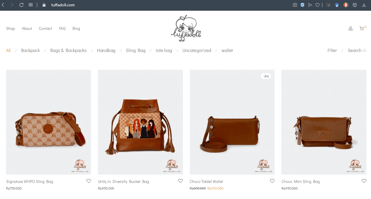 Tuffadoll adalah website e-commerce yang menjual apparel handmade, terutama tas berbahan kulit asli. Bisnis yang berada di Kota wisata Batu ini menjadikan website sebagai representasi utama usahanya sehingga bisa menjangkau pangsa pasar internasional.