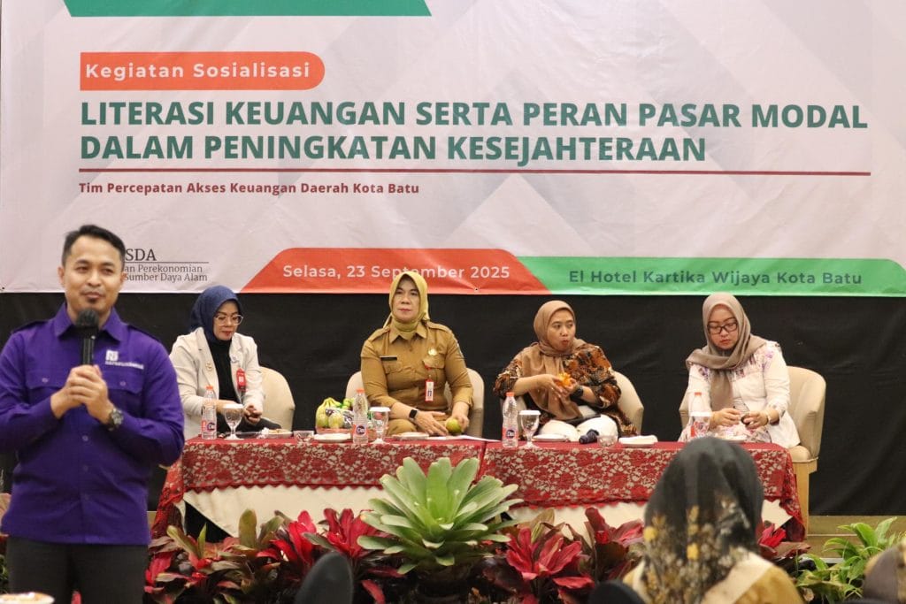 Kota Batu — Di tengah pesatnya perkembangan ekonomi digital, literasi keuangan menjadi fondasi penting bagi keberlangsungan usaha. Hal ini sangat penting bagi pelaku koperasi dan Usaha Mikro, Kecil, dan Menengah (UMKM) di sektor ekonomi kreatif. Menyadari urgensi tersebut, Tim Percepatan Akses Keuangan Daerah (TPAKD) Kota Batu bekerja sama dengan Otoritas Jasa Keuangan (OJK) menggelar kegiatan sosialisasi literasi keuangan. Acara ini mengusung dengan tema “Literasi Keuangan serta Peran Pasar Modal dalam Peningkatan Kesejahteraan”. Acara ini diselenggarakan pada Selasa, 23 September 2025, di EL Hotel Kartika Wijaya, Jl. Panglima Sudirman No. 127, Kota Batu, dan dihadiri oleh pelaku usaha lokal, pengurus koperasi, serta perwakilan komunitas ekonomi kreatif.